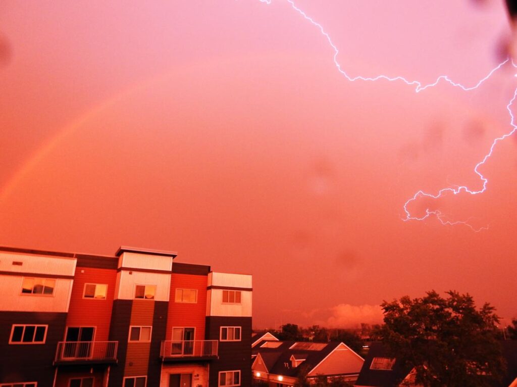 Lightning and Rainbow in Evening Sky – Monona, WI