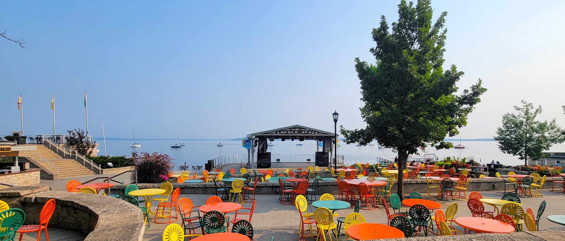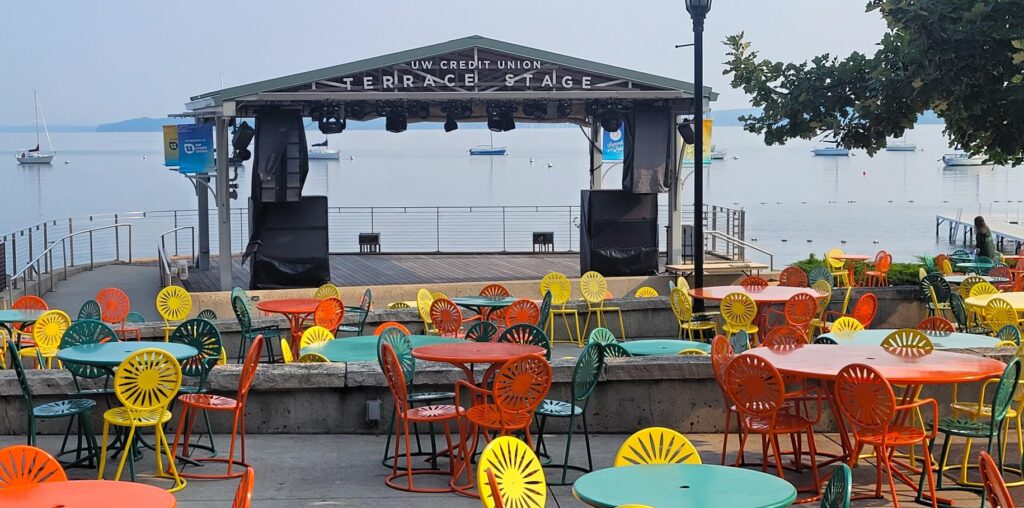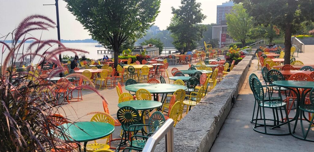 Seating in Front of the Bandstand, Memorial Union Terrace and Der Rathskeller – Madison, WI