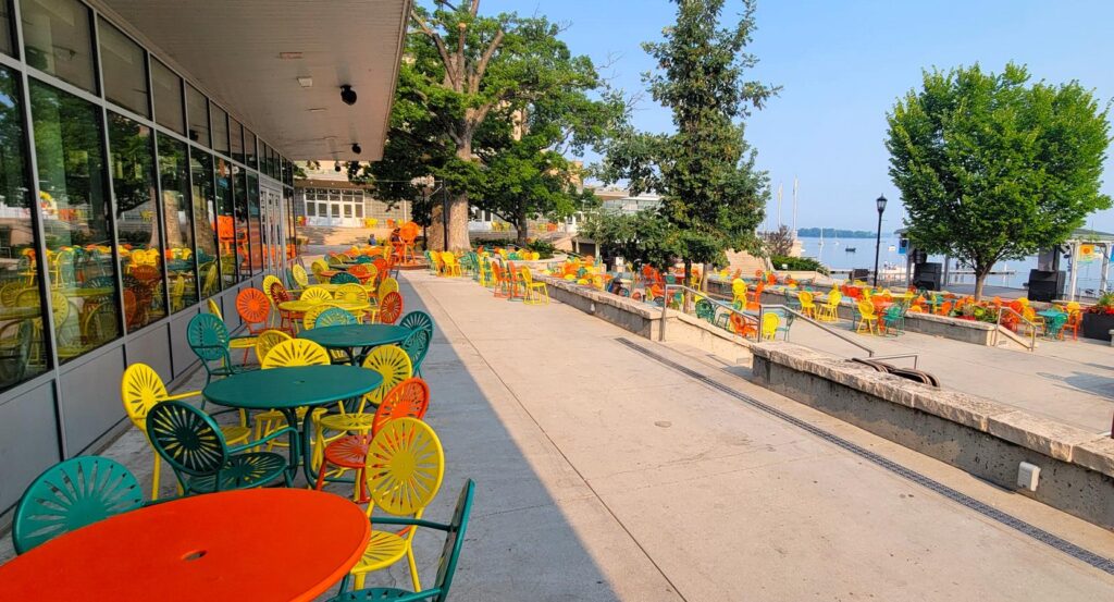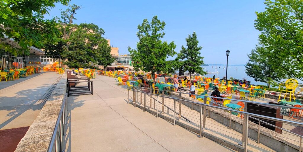 Seating in Front of the Bandstand, Memorial Union Terrace and Der Rathskeller – Madison, WI
